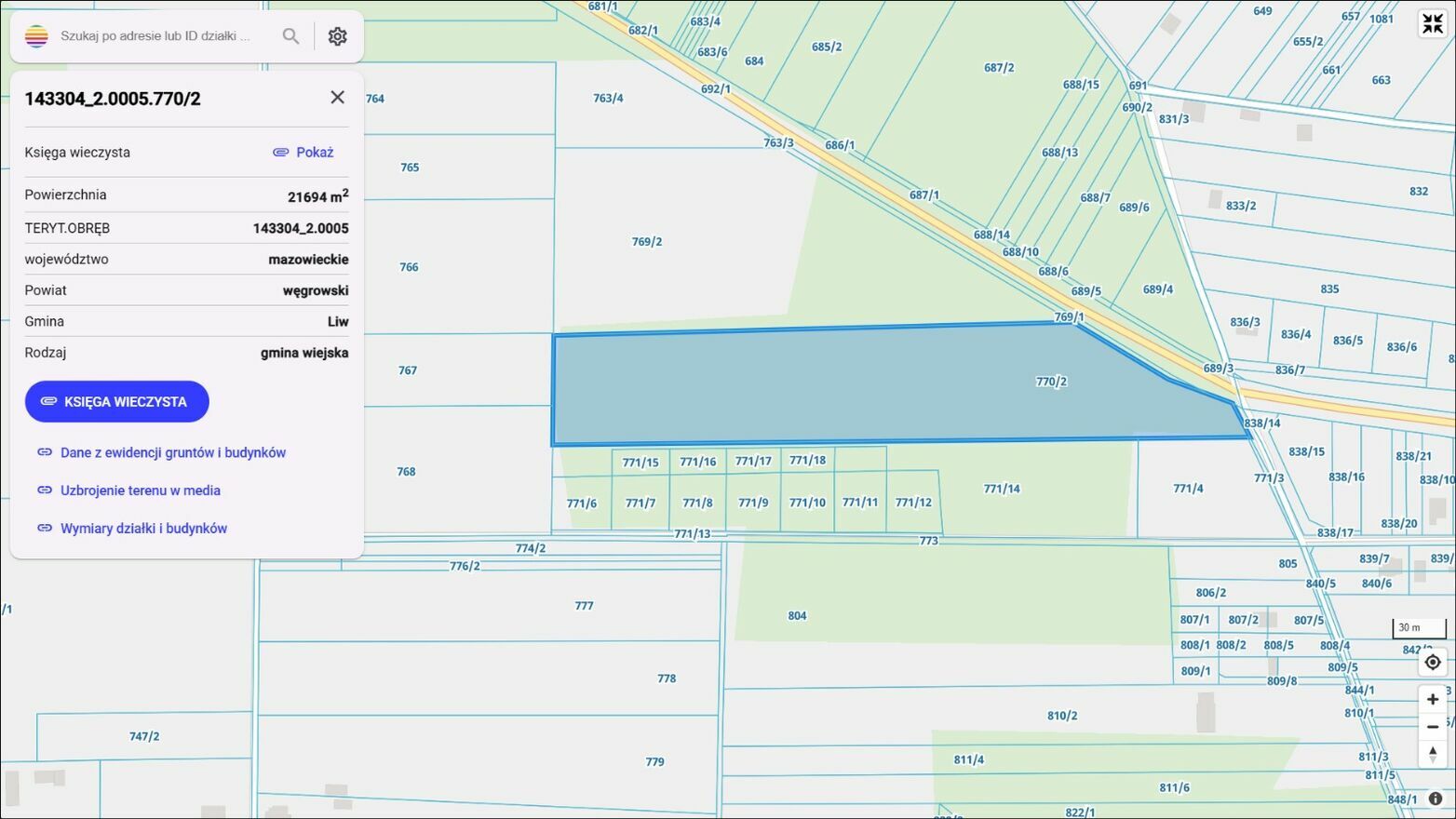 1. Działka nr 770/2 o powierzchni ponad dwa hektary; dokładnie 21 686 m2. Las sosnowy.
