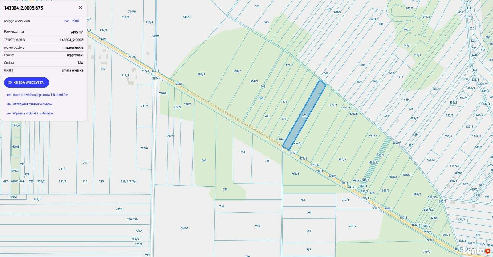 3. Działka nr 675 o powierzchni 5499 m2. Las sosnowo liściasty. Z drogą dojazdową.